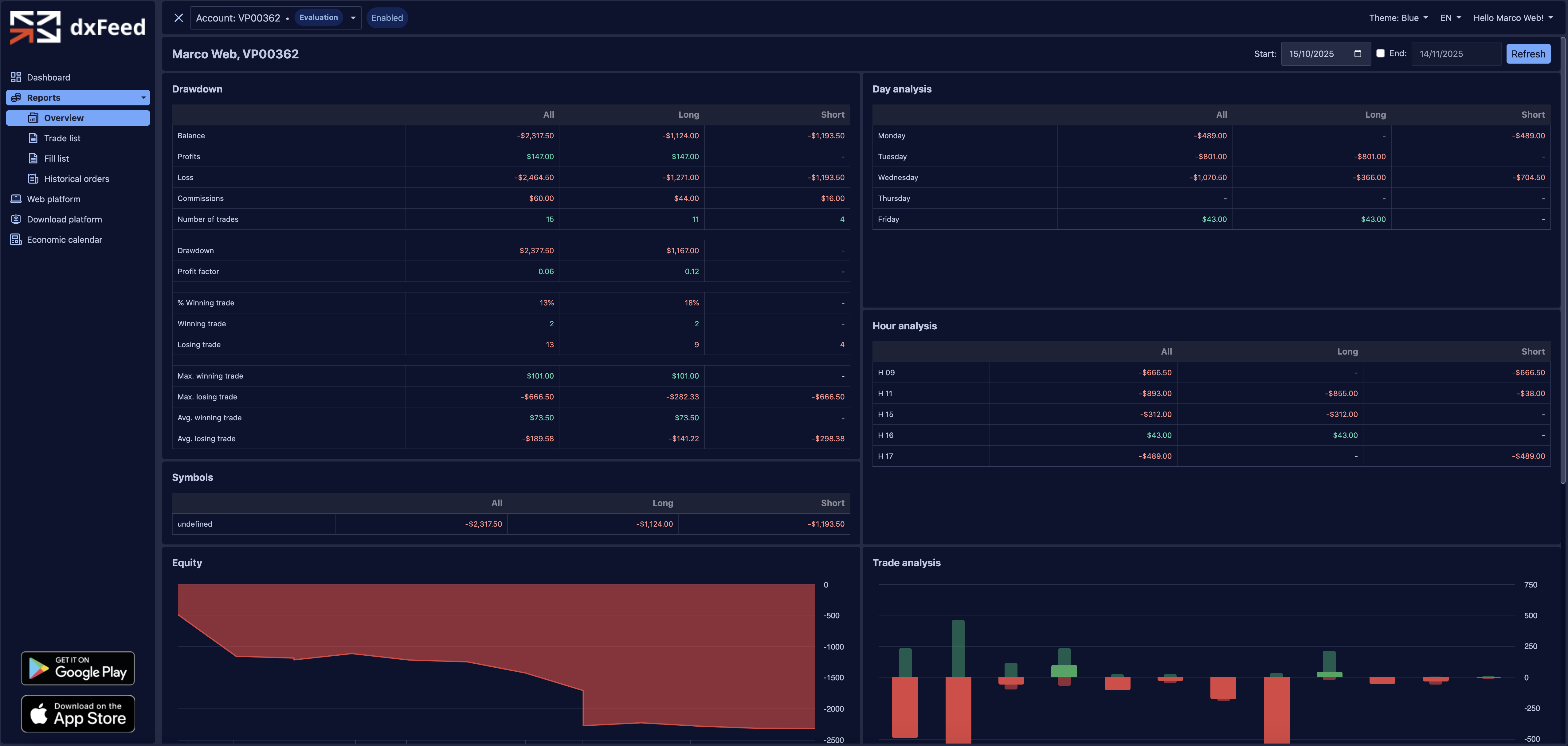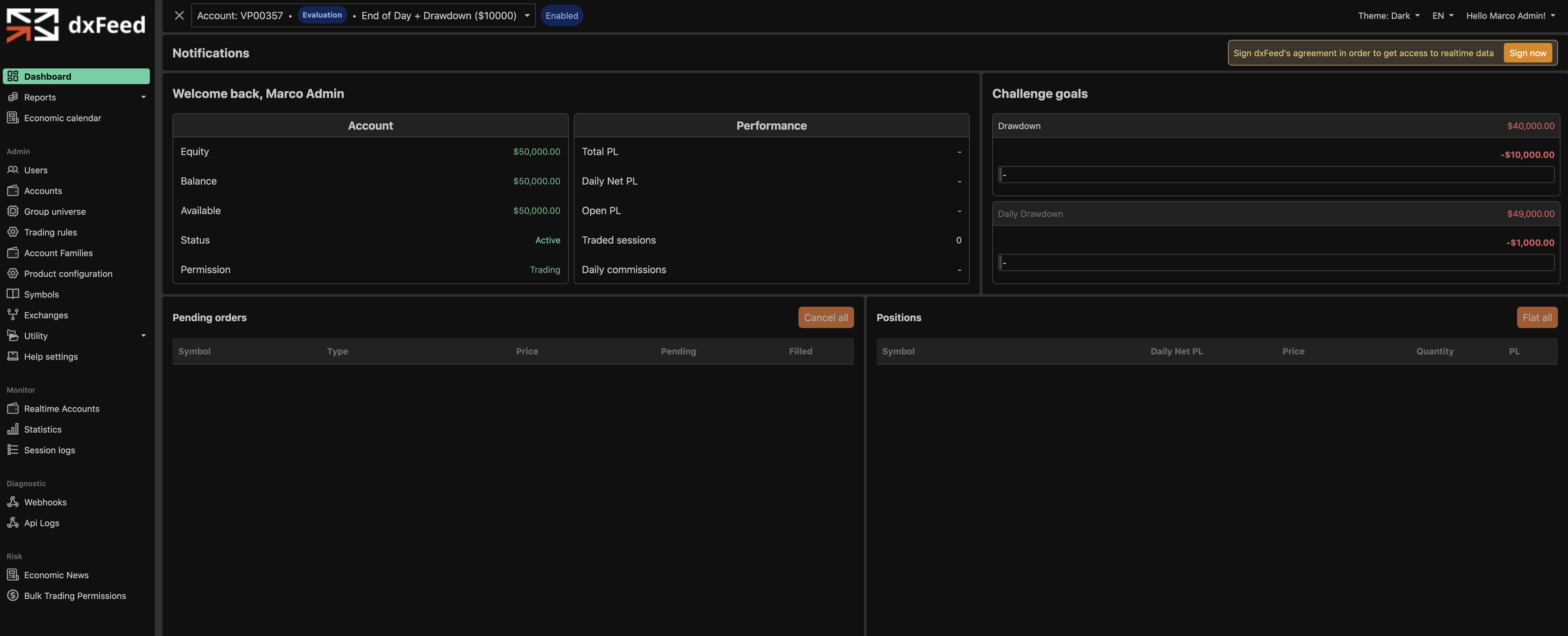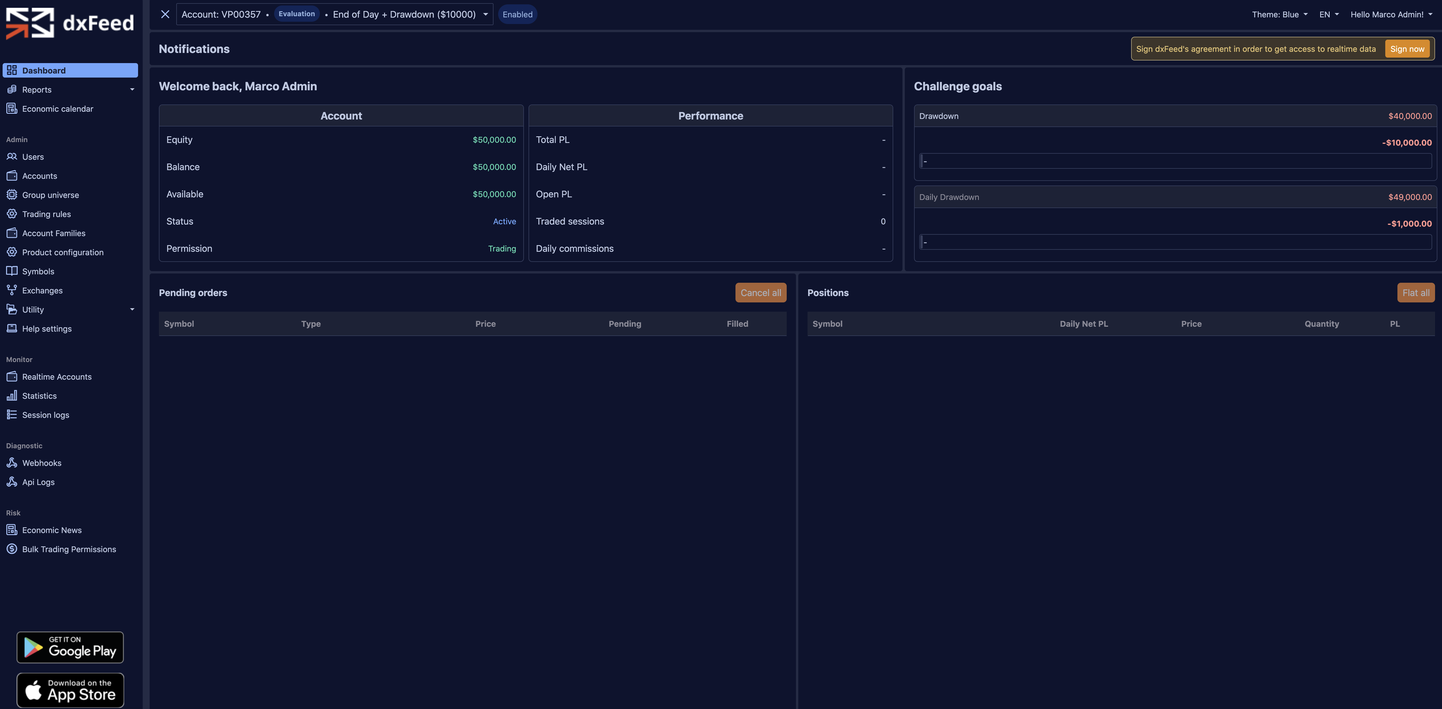Our Dashboards and Platforms are recognized globally. Used by over 20 Prop Firms Futures worldwide for operational management and monitoring. Data quality is guaranteed by our partnership with dxFeed for real-time data feeds..