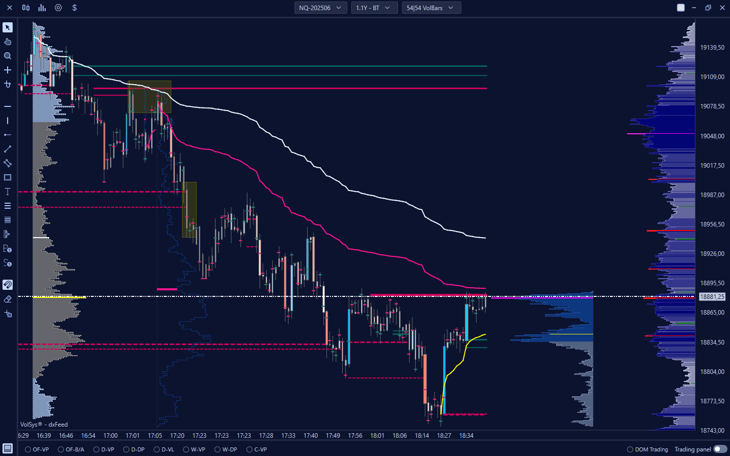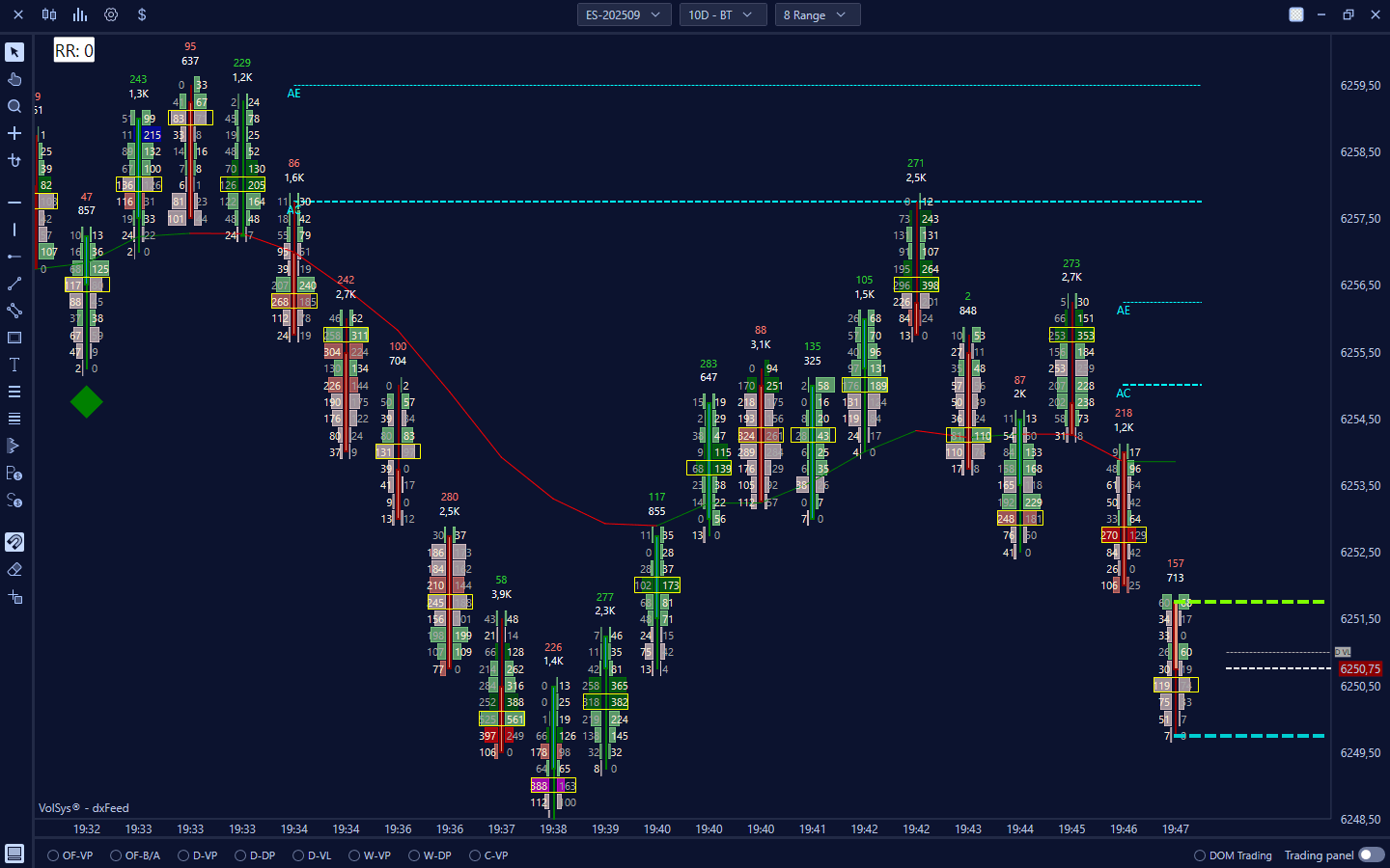 The Plug-In collects various information from Volume Profile, Order Flow, Time and Sales, plotting it in a single chart in order to simplify the reading of the market.