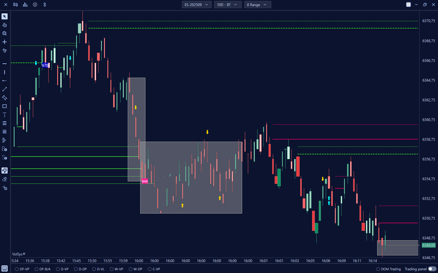As mentioned before, volume analysis is not easy and certainly the most difficult thing is the correct order flow analysis. VolSignal not only analyzes the order flow of each individual bar, but also interweaves it with different time frame and volume profile analysis.