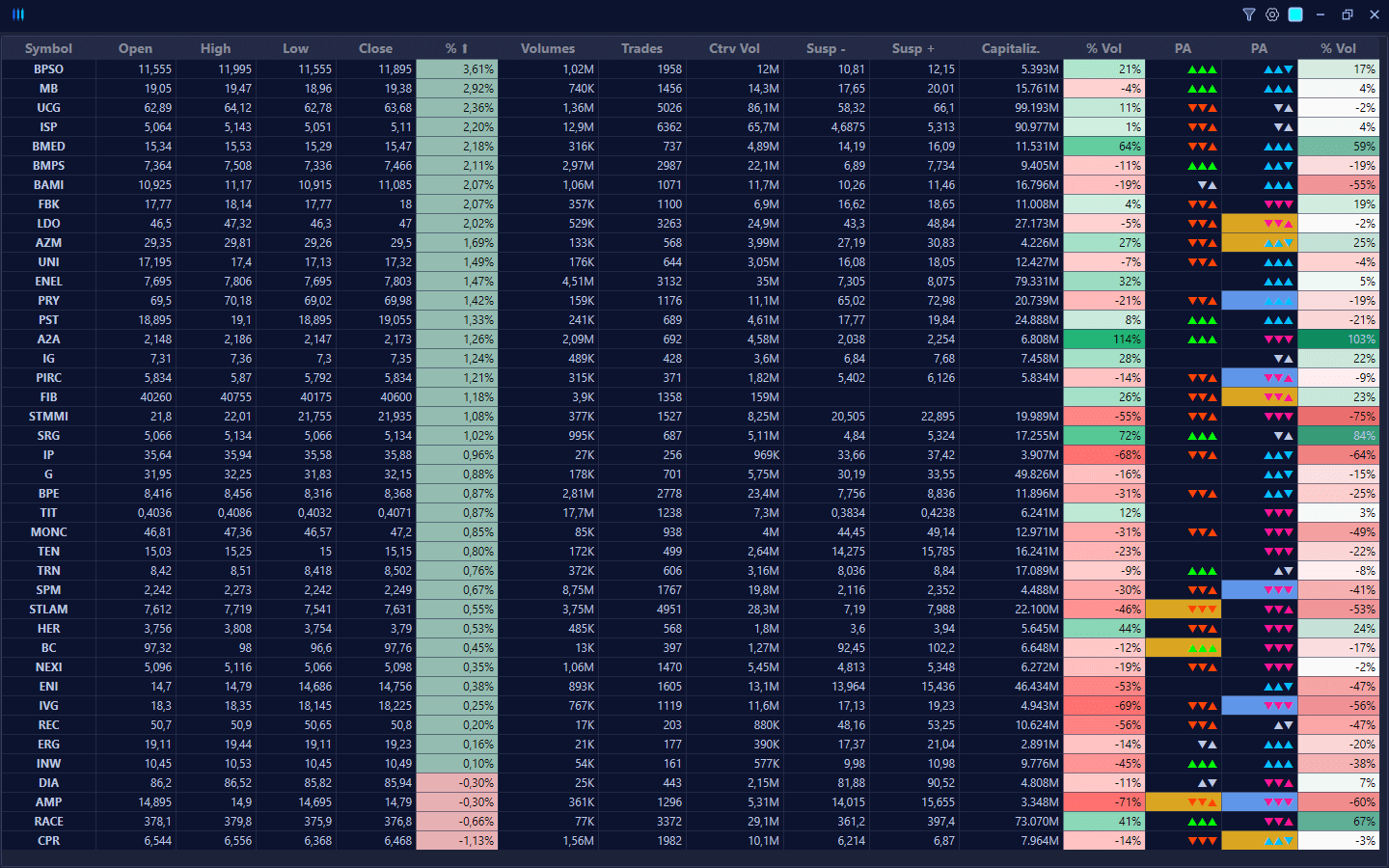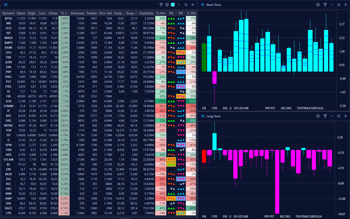 Let's put an end to compromise: with our platforms, you have a full arsenal of market analyzers at your disposal. From the most classic tools to those we have created exclusively, every single resource is available to you in a single, very powerful workspace.