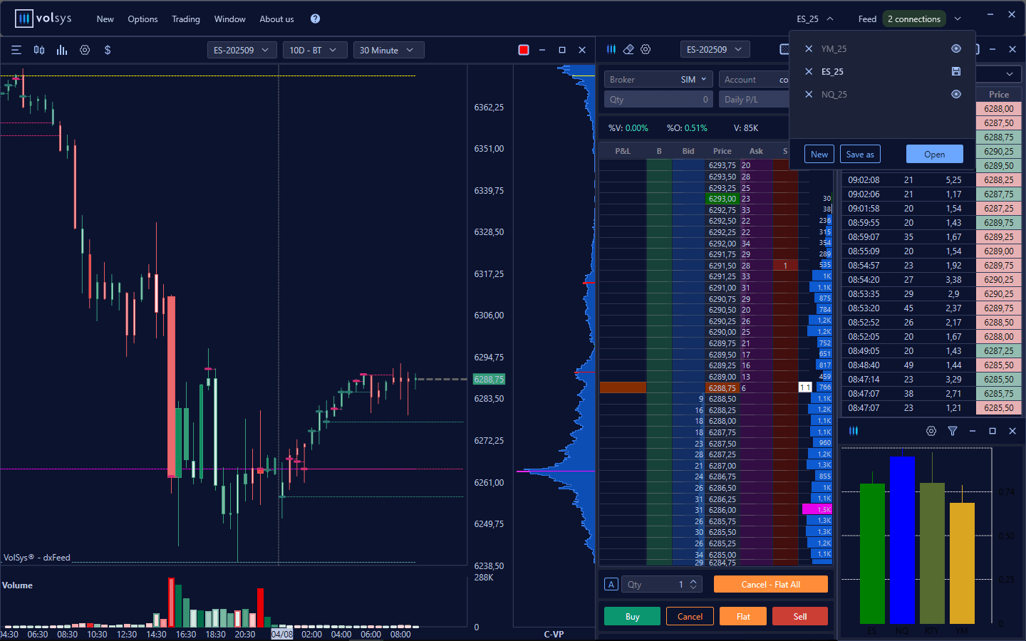 VolSys® is a professional trading platform whose main focus is Order Flow Analyzer, Volume Profile, Time & Sales and Order Flow analysis. We have developed many proprietary indicators based on our market experience and partner traders.