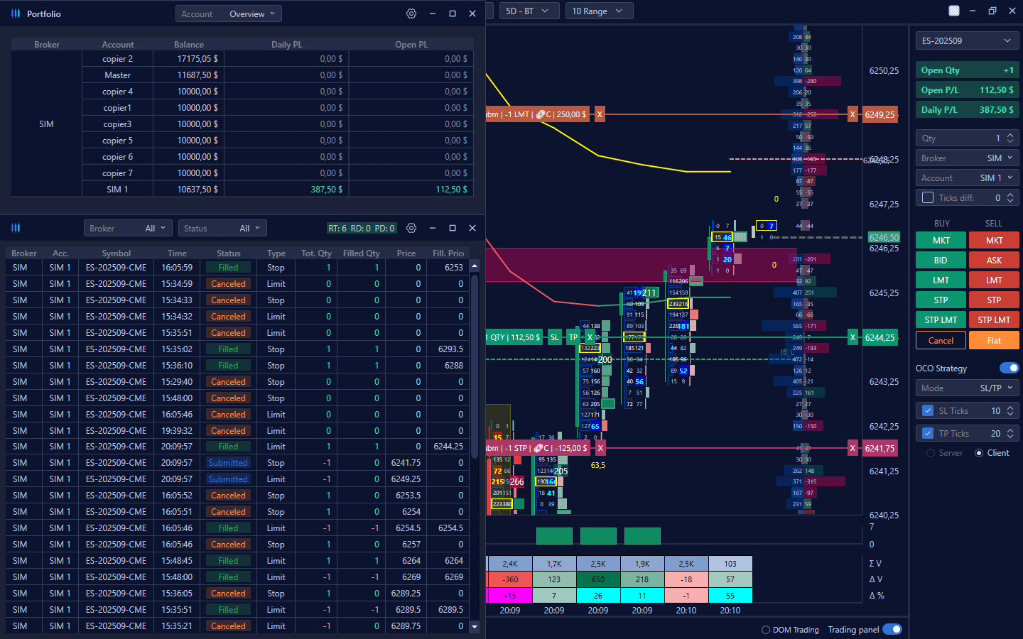 Our platform also supports connections with other high-quality data providers such as CQG, IQFeed ensuring you access to robust and reliable data feeds. Importantly, you also have the option of using a data feed already provided by your trusted broker, as long as it is compatible with those supported by our platform. This ensures that you can continue to operate with your preferred configurations while maintaining business continuity. For all the specific details on compatibility and how to connect, please consult the dedicated page on our website, where you will find all the information you need to best configure your trading environment.