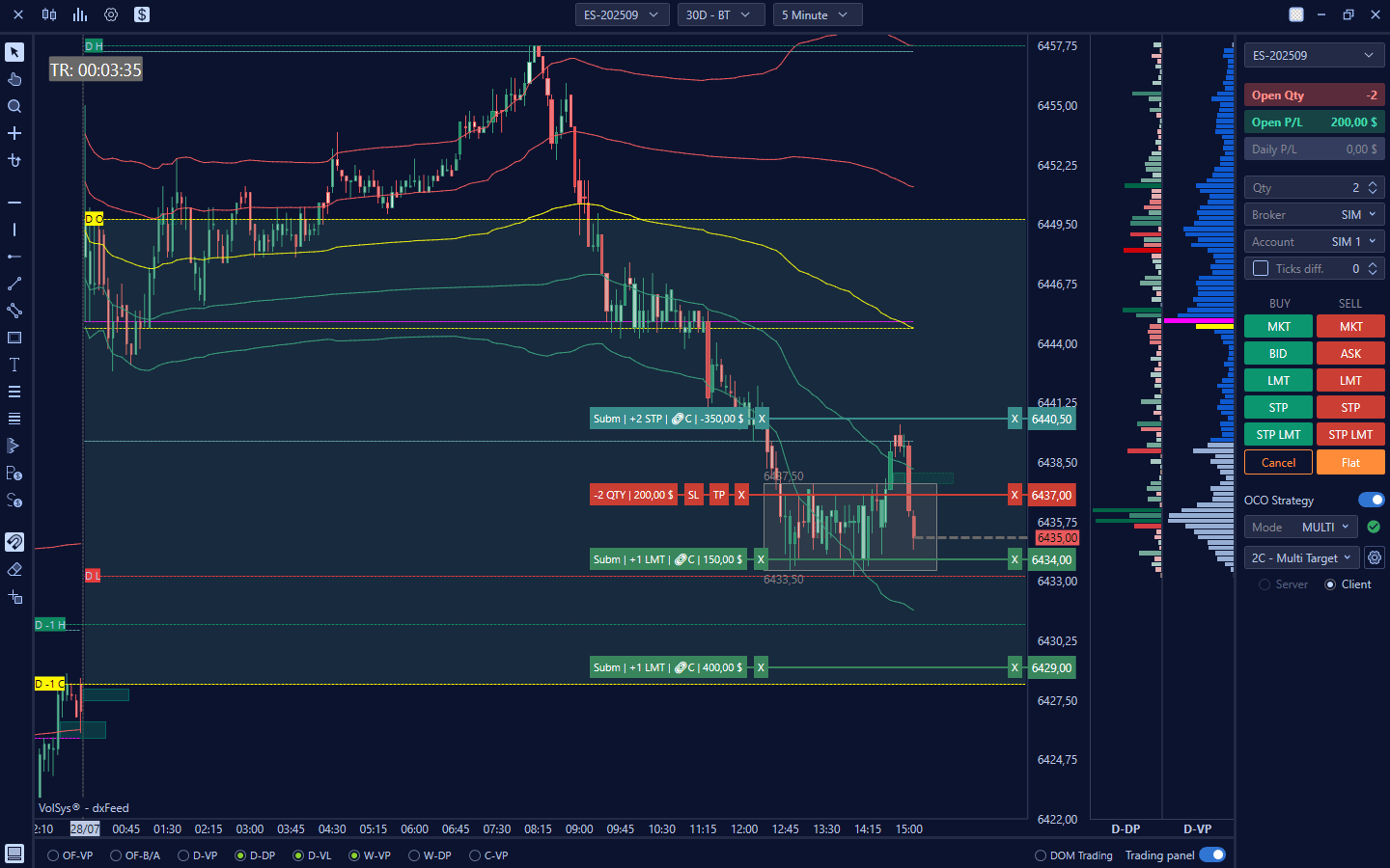 Analyze Order Flow Analyzer, Volume Profile, Time and Sales and Orders with VolSys
