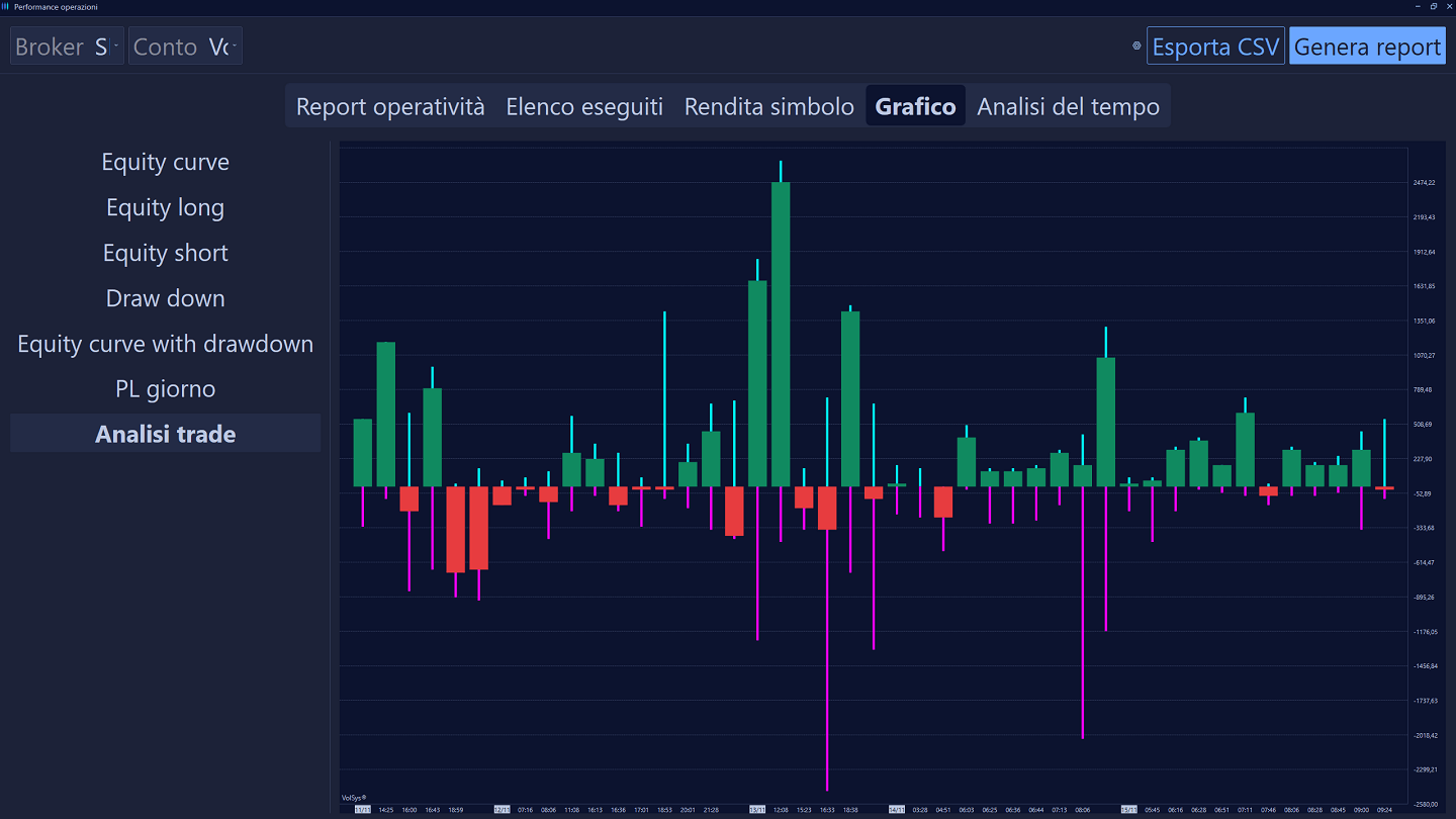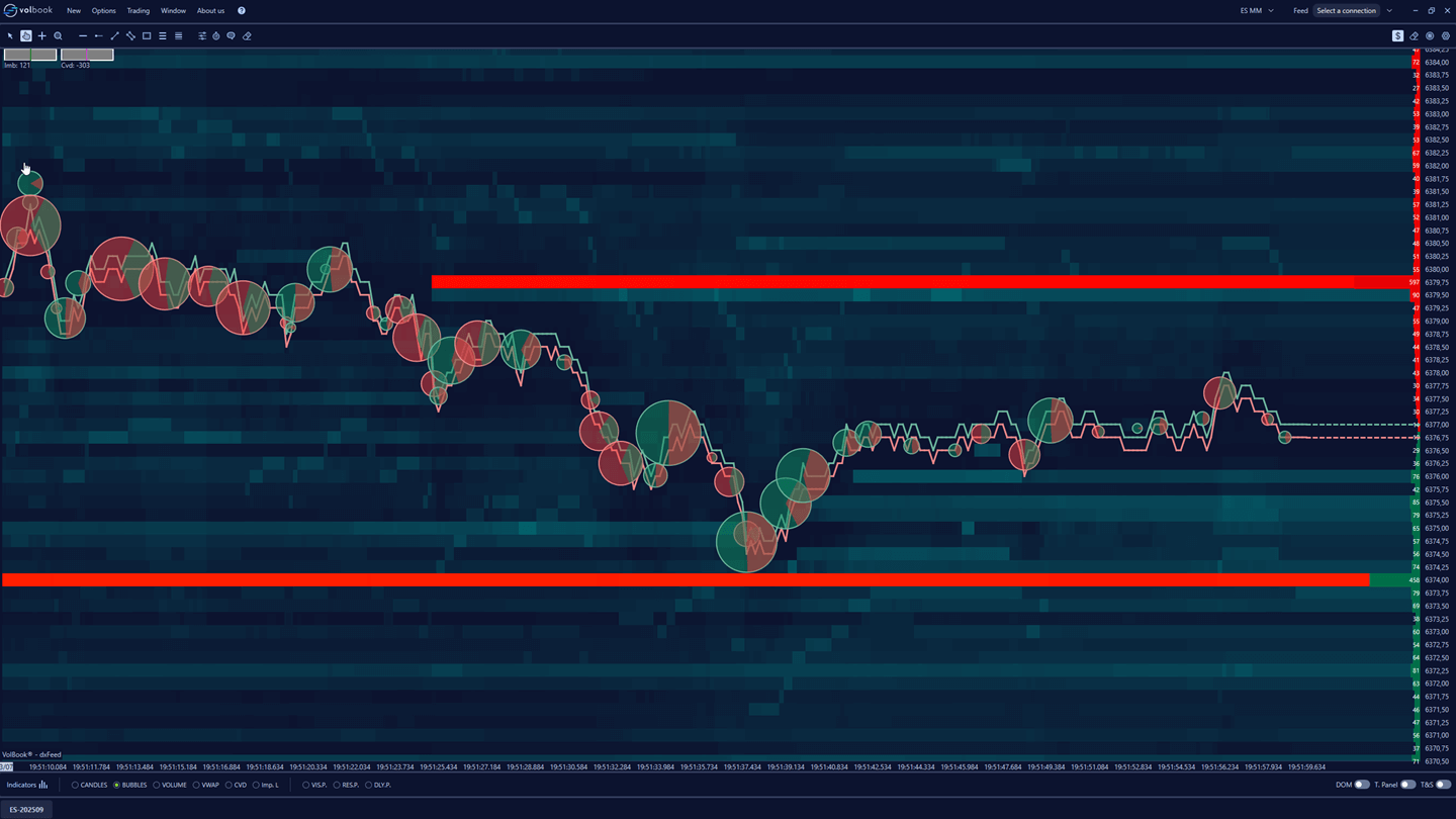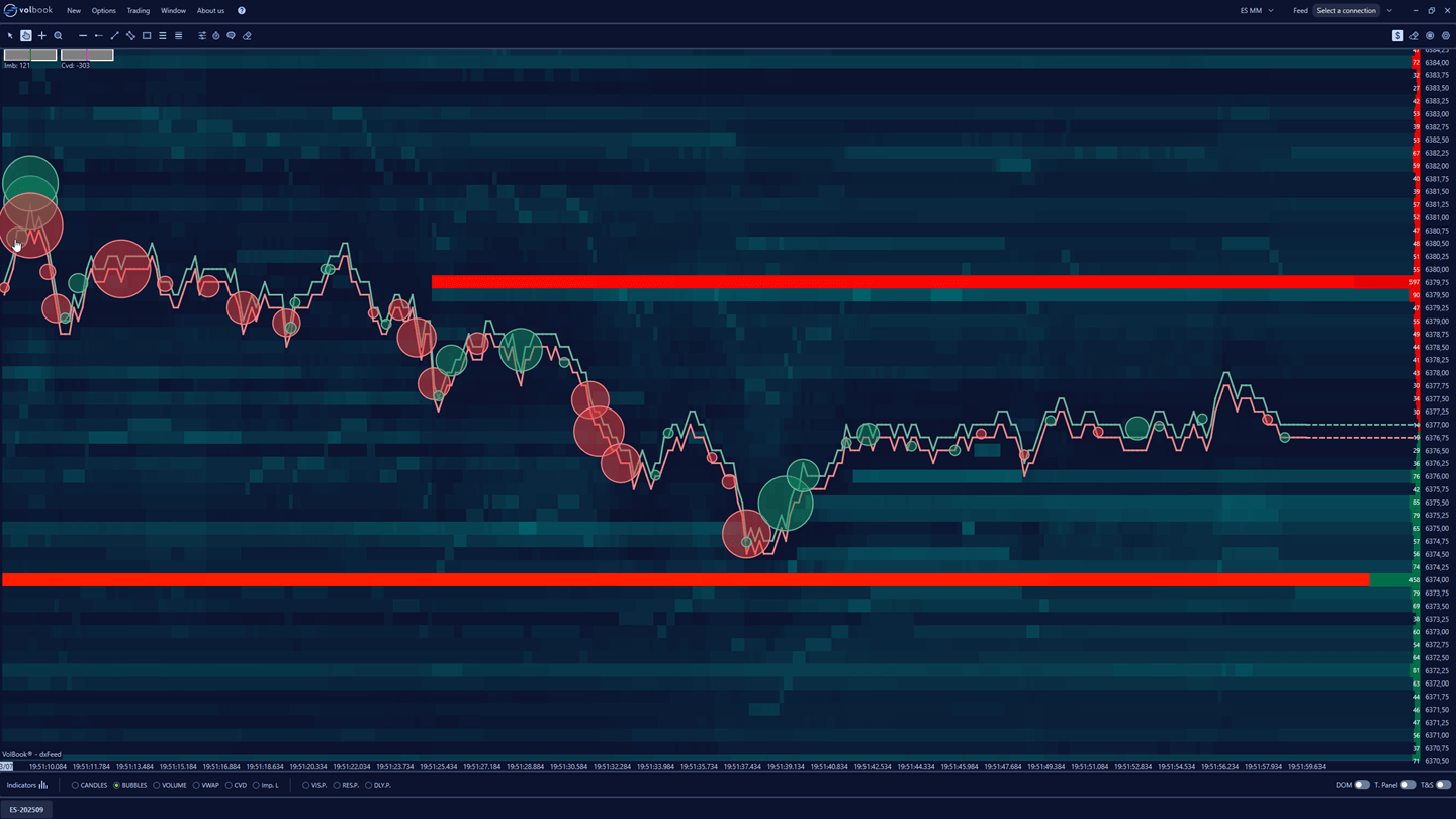 The VolAnalyzer is the ideal suite of proprietary indicators for those new to volume analysis. It simplifies the understanding of market dynamics by providing key information on fundamental volume actions such as Pressures, Absorptions, Accelerations and Exhaustions. A powerful tool for less experienced users, it opens the door to a deeper and more informed reading of the market.