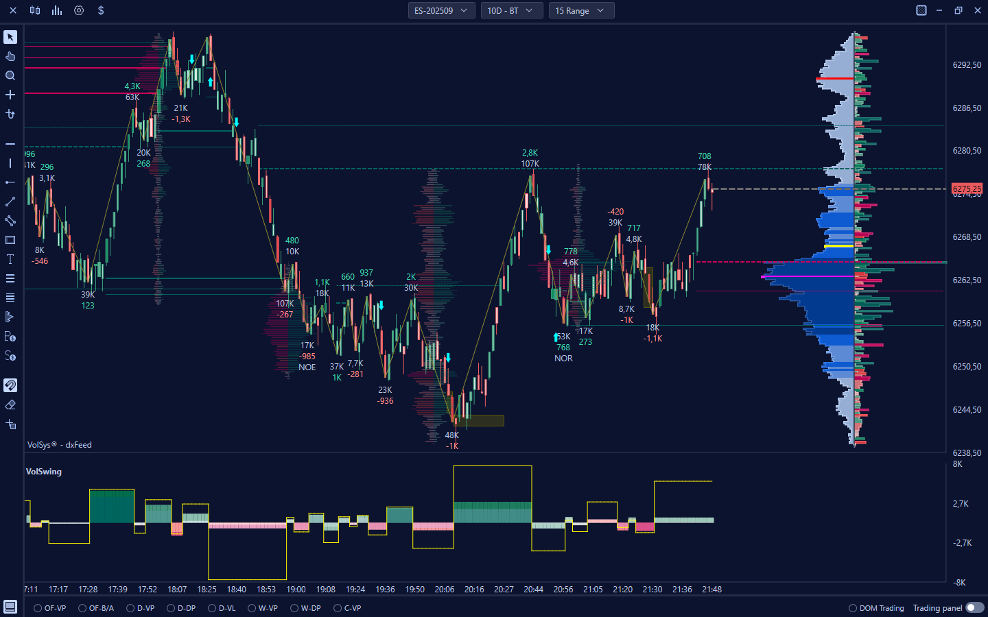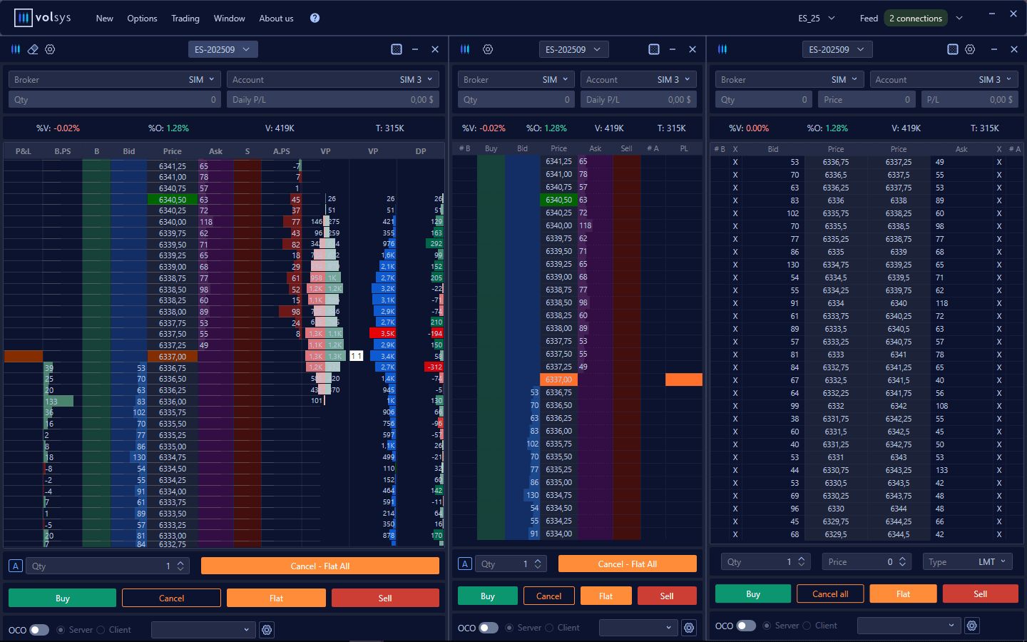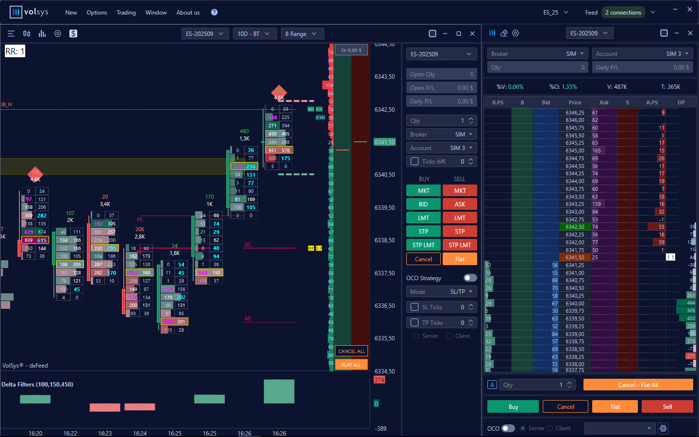 Analyze Order Flow Analyzer, Volume Profile, Time and Sales and Orders with VolSys